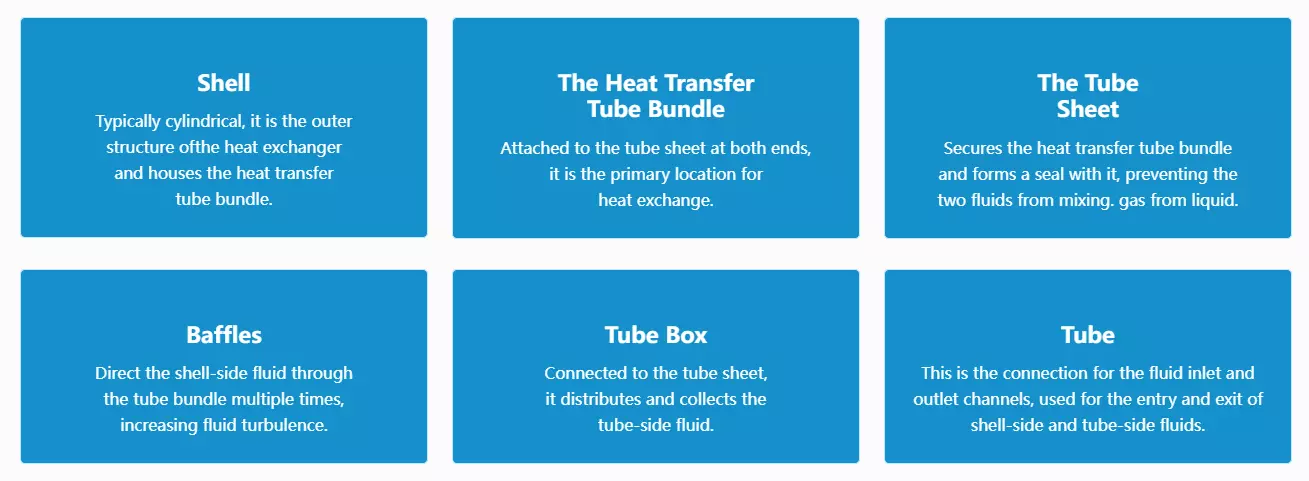 The technical principle of a shell-and-tube heat exchanger is primarily based on inter-wall heat exchange. In this process, one fluid flows through the interior of the tube bundle, while another fluid flows in the shell outside the bundle, exchanging heat through the tube walls. Specifically, the working principle of a shell-and-tube heat exchanger includes the following aspects: